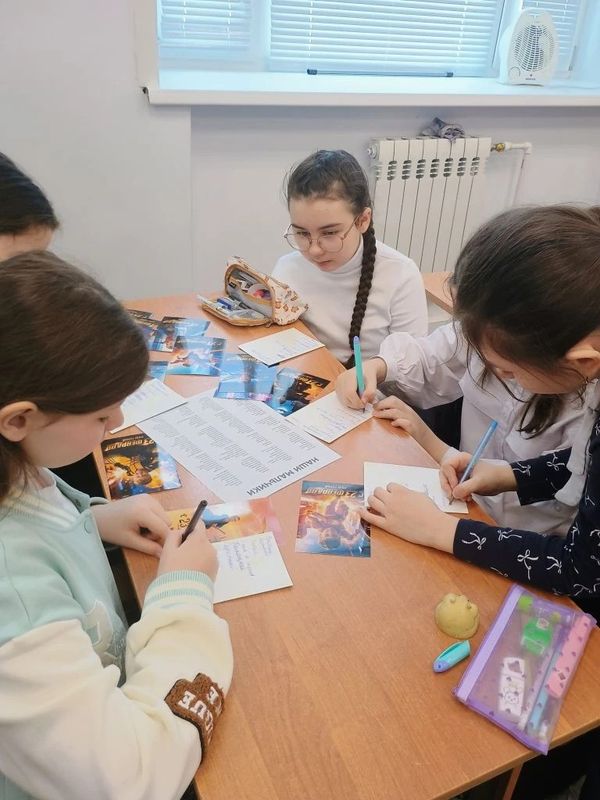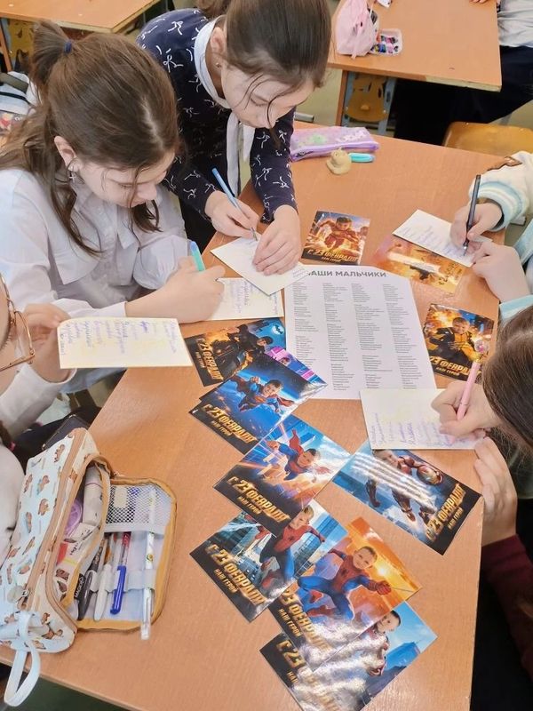 Девочки подписывали открытки и придумывали комплименты мальчикам ✍️💕. Честно искали хорошие слова, пару раз написали «болтливый», но исправили на «общительный» 😄