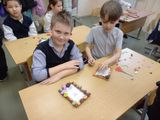 → Создавали объёмные открытки с использованием необычных текстур (шерсть, гофрированная бумага, восковые мелки).