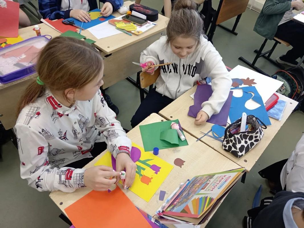 Накануне самого тёплого весеннего праздника ученики 4«Б» класса вместе с наставниками создавали особенные подарки — открытки для мам, сделанные своими руками.