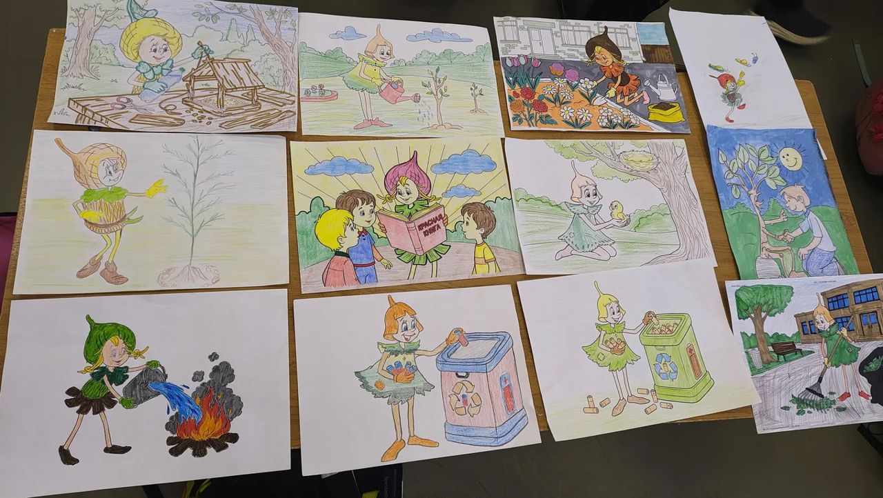 Но это ещё не всё! Также в нашем классе был проведен конкурс рисунков с персонажами всероссийского проекта «Эколята» — Умницей, Шалуном, Тихоней и Ёлочкой. Самые креативные работы создали 🏆Баканова Василиса и 🏆Сидоров Максим. Они тоже получили сладкие призы и бурные аплодисменты.