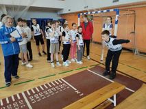 → Прыжок в длину с места — кто дальше, тот ближе к золотому значку!