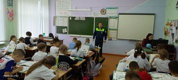 5 сентября школу посетил инспектор ГАИ, который напомнил ученикам начальной школы о правилах дорожного движения.