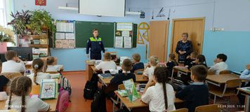В ходе встречи инспектор разъяснил правила перехода улиц, рассказал о значениях дорожных знаков и разметки, напомнил школьникам основные принципы безопасного поведения пешеходов и водителей.