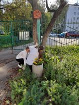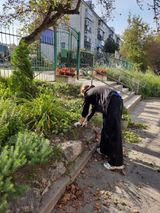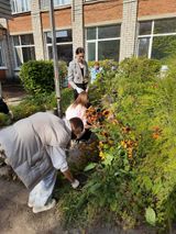 18 сентября ученицы 8б класса помогли привести пришкольные клумбы в порядок.