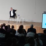 24 октября 2025 года ученики 8 в класса вместе с классным руководителем Профорук А.В. встретились с Алексеем Талаем — белорусским мотивационным спикером, многократным рекордсменом мира и Европы по плаванию, предпринимателем и общественным деятелем.