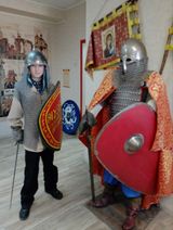 В музее Суздальская дружина ребята узнали о бесстрашных защитниках Владимирской земли, о разнообразных видах оружия. В конце экскурсии мальчики смогли надеть на себя кольчуги, подержать в руках мечи, а девочки облачиться в сарафаны и примерить головные уборы. Затем ребята стали участниками мастер класса по росписи старинной деревянной игрушки - погремушки.