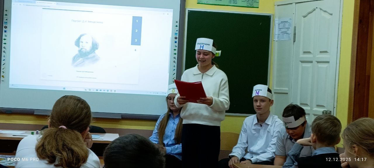 12 декабря учащиеся 3В класса совершили увлекательное путешествие в мир науки — на занятии Научного клуба «Первых», полностью посвящённом Дмитрию Ивановичу Менделееву и его знаменитой таблице химических элементов.