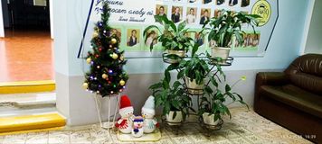 В этом году мы решили украсить окна белыми снежинками и поздравлением с самым волшебным праздником Новым годом, а также красивыми ёлочками и ёлочными игрушками.