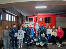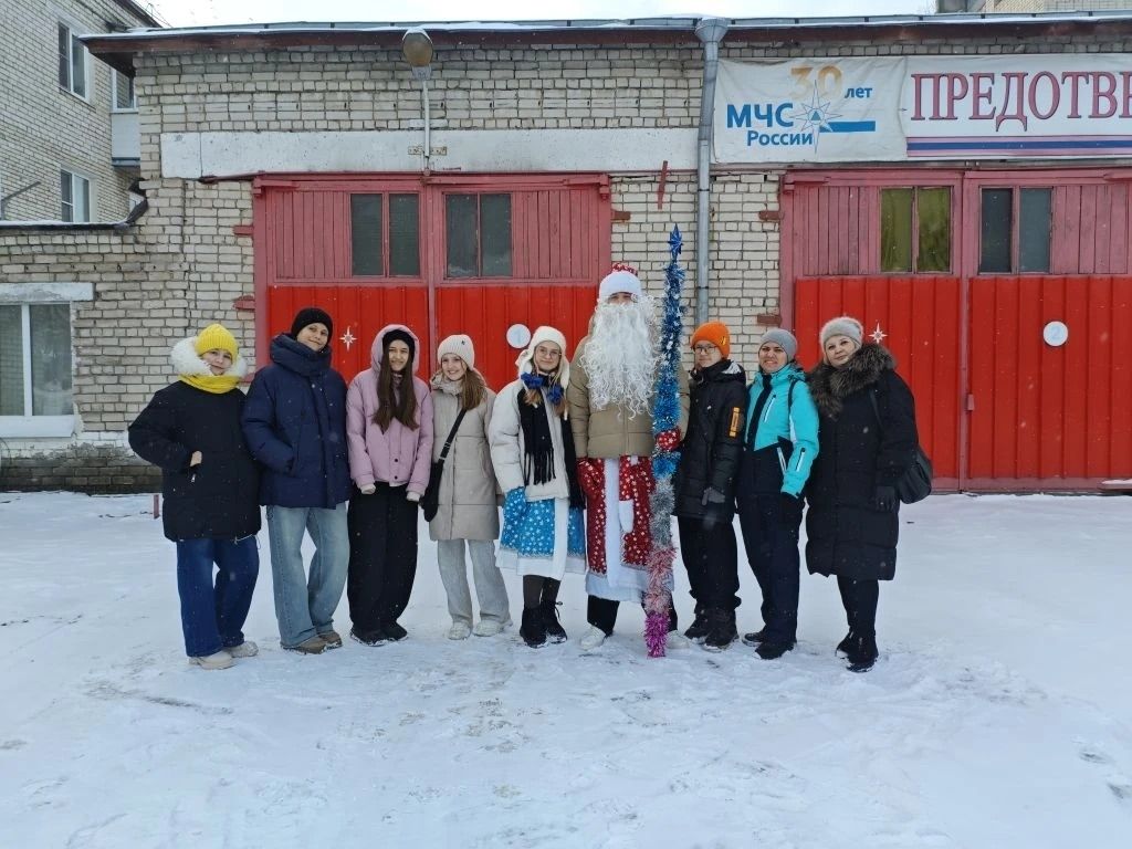 Ребята отправились в одну из пожарно-спасательных частей города, чтобы подарить праздничное настроение тем, кто каждый день стоит на страже нашей безопасности.