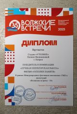Мы поздравляем Полину как победителя в номинации" Лучшая операторская работа" в фильме "Осколки памяти" с таким успехом и желаем продолжать ей успешно свой творческий путь!!!