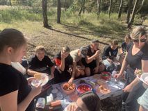 В субботу, 14 сентября, ученики 7в класса с классным руководителем и родителями ходили в поход. Погода стояла тёплая и солнечная. Все прошло отлично. Было много родителей. Играли в подвижные игры (волейбол, вышибалы, бадминтон, футбол). Был "лесной тир" - сбивали пластиковые бутылки шишками. Победителей наградили медалями. Жарили сосиски. Потом играли в "Крокодила". Всё делали дружно, весело и вместе с родителями. Все остались очень довольны и получили массу положительных эмоций.